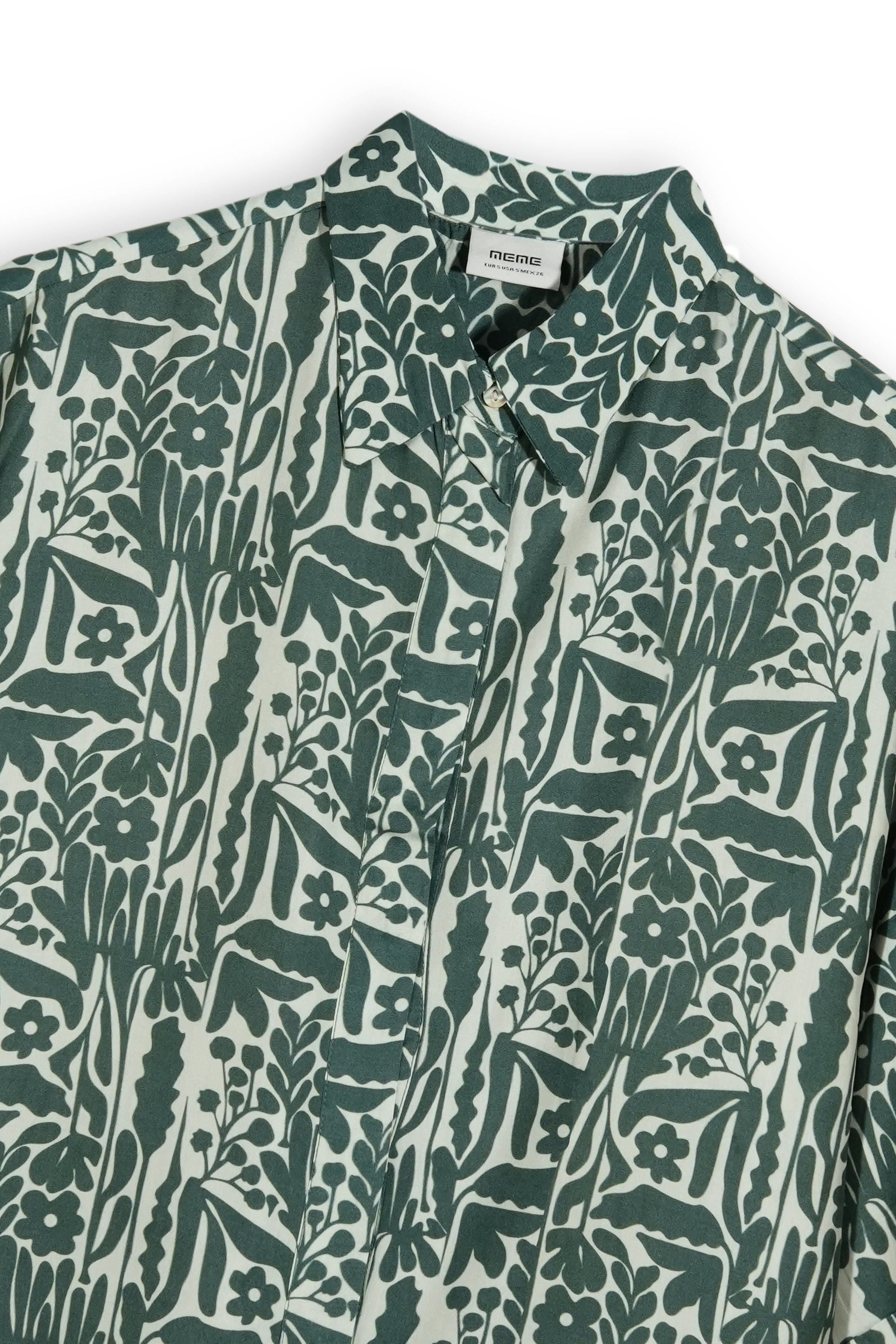 Fresh and lively, this green printed shirt adds a vibrant touch to your look. A breathable and comfortable choice for all-day wear.Do not bleach