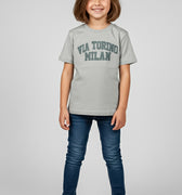 Bring European street-style flair to your child’s wardrobe with this pastel pink “Via Torino Milan” graphic t-shirt. Made from soft cotton with a classic crew neck fit, it’s the perfect blend of comfort and fashion-forward style for everyday wear.
