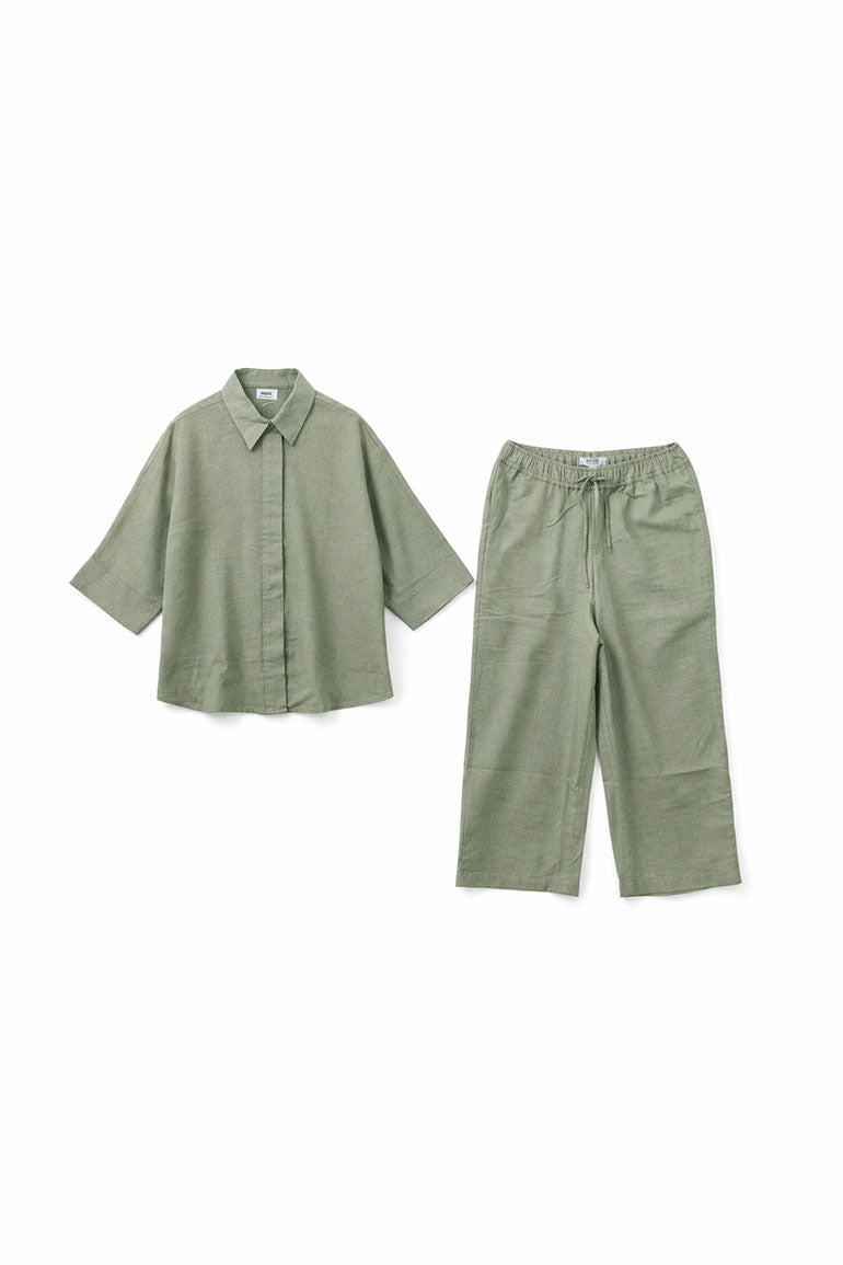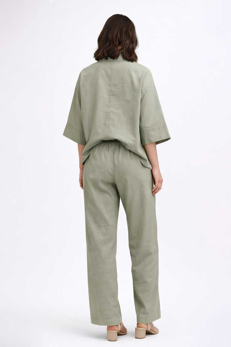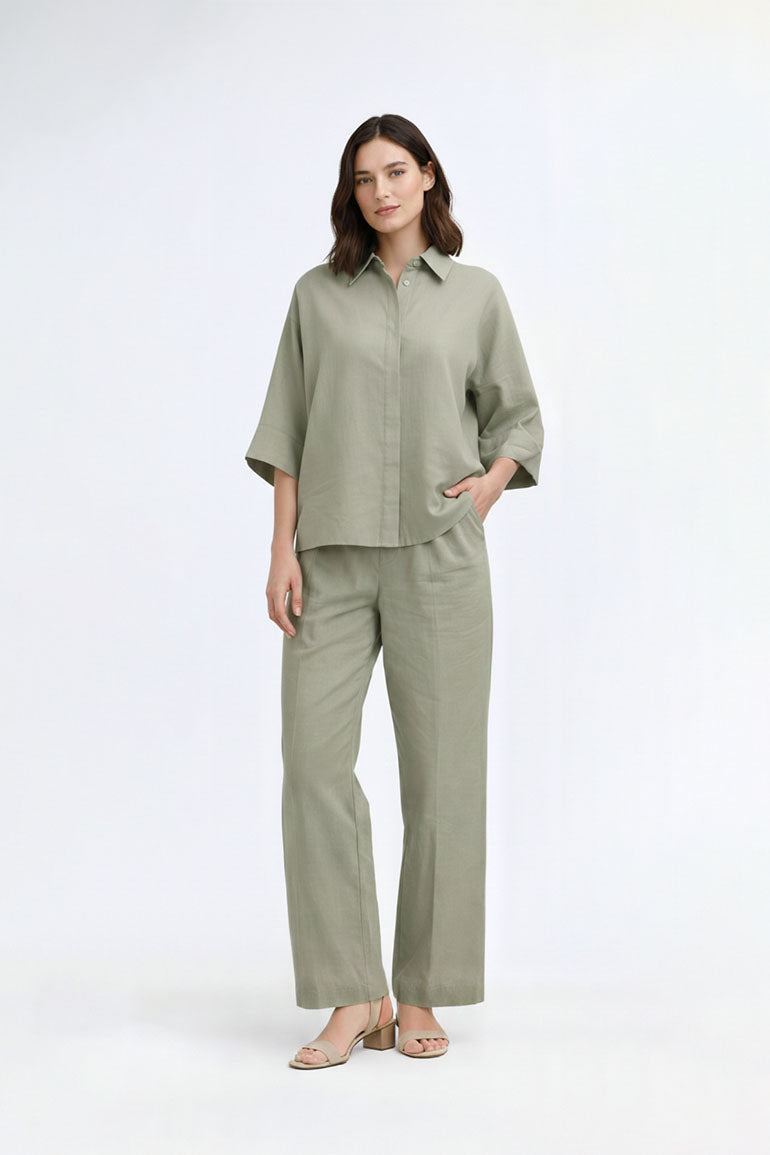 A relaxed co-ord set featuring a structured oversized shirt and wide-leg pants. Effortlessly chic and ideal for modern minimal styling