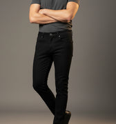These black skinny fit jeans for men combine classic design with modern comfort. Crafted from premium stretch denim, they provide a sleek, tapered look while ensuring all-day ease of movement. Featuring a mid-rise waist, button closure, and traditional five-pocket styling, these jeans are perfect for both casual and smart-casual wear. Pair them with a T-shirt for a relaxed vibe or a shirt and jacket for a polished evening look.