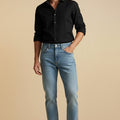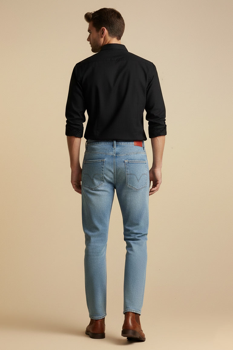 A timeless essential reimagined in a fresh ice-blue wash. These slim-fit jeans are tailored to give a modern, sleek silhouette while maintaining all-day comfort. Crafted from premium stretch denim, they offer a perfect balance of structure and flexibility — ideal for both casual and smart-casual looks.