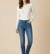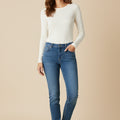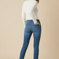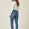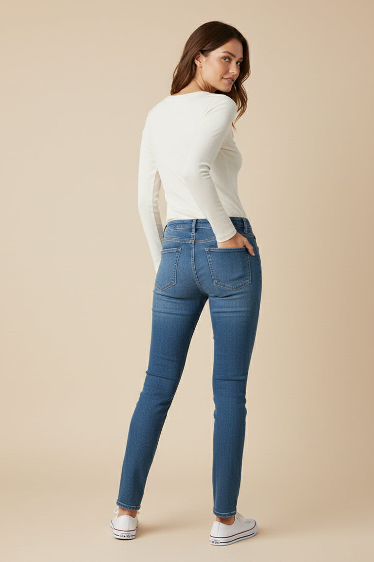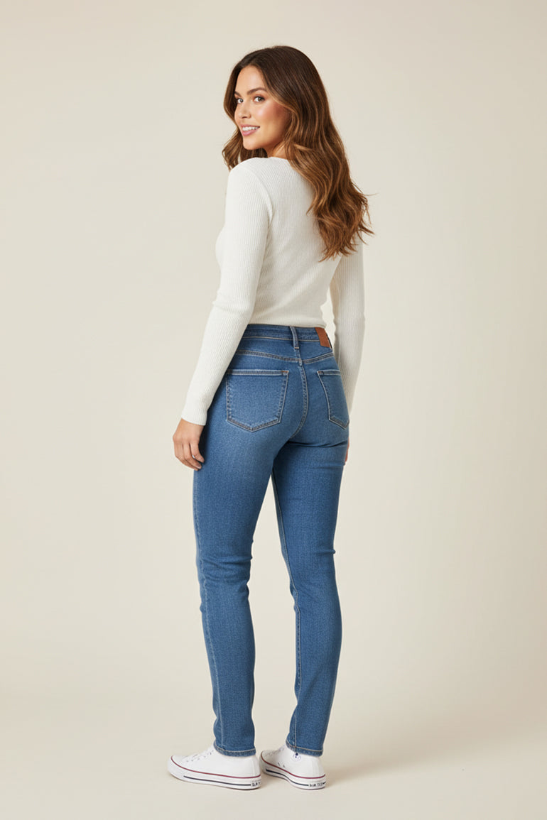 A wardrobe essential these mid blue skinny jeans feature a flattering high-rise fit with just the right amount of stretch for all-day comfort. Designed with a clean finish and subtle fading, they pair effortlessly with everything from crisp shirts to cozy knits for an easy, everyday look.