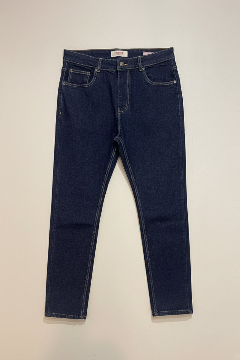 A timeless wardrobe essential, these dark indigo jeans feature a sleek straight fit designed to elongate your silhouette. Crafted from a soft stretch denim blend, they ensure all-day comfort without compromising on structure. The deep indigo wash with contrast stitching gives a polished finish, making them versatile for both casual and semi-formal looks. Pair them with a crisp shirt or a relaxed tee for effortless sophistication.