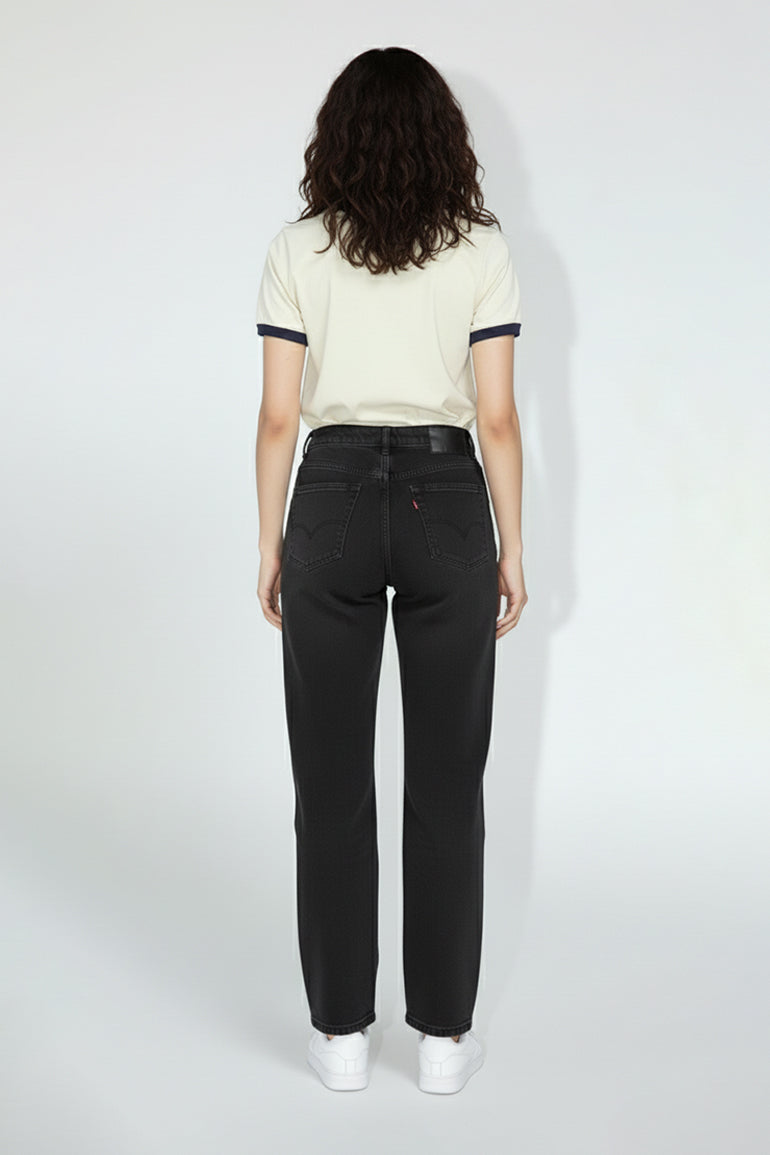 Elevate your everyday denim look with our Straight Jeans in classic black. Designed for a flattering, sculpted fit through the waist and hips, these jeans fall into a relaxed straight leg for a timeless silhouette. Crafted from premium stretch denim, they ensure all-day comfort and effortless movement while maintaining shape.