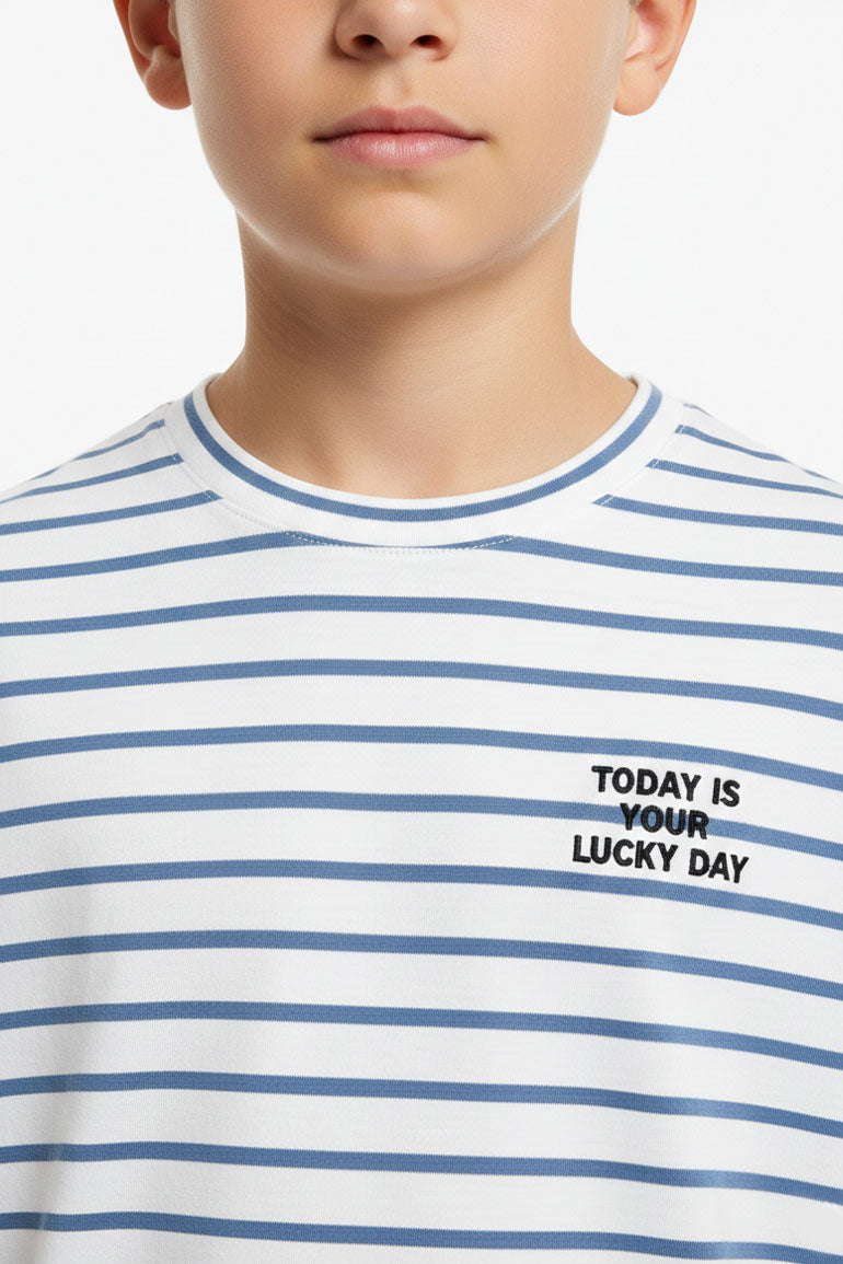 Striped Oversized T Shirt For Boy - Blue Stripe