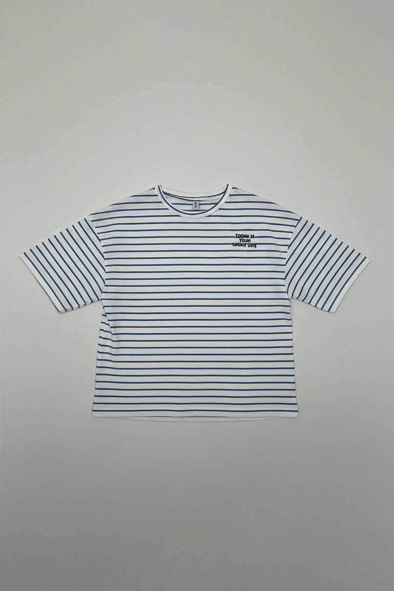 Relaxed oversized t shirt with soft breathable fabric for everyday comfort. Classic stripe design with a small chest slogan for an easy casual look.