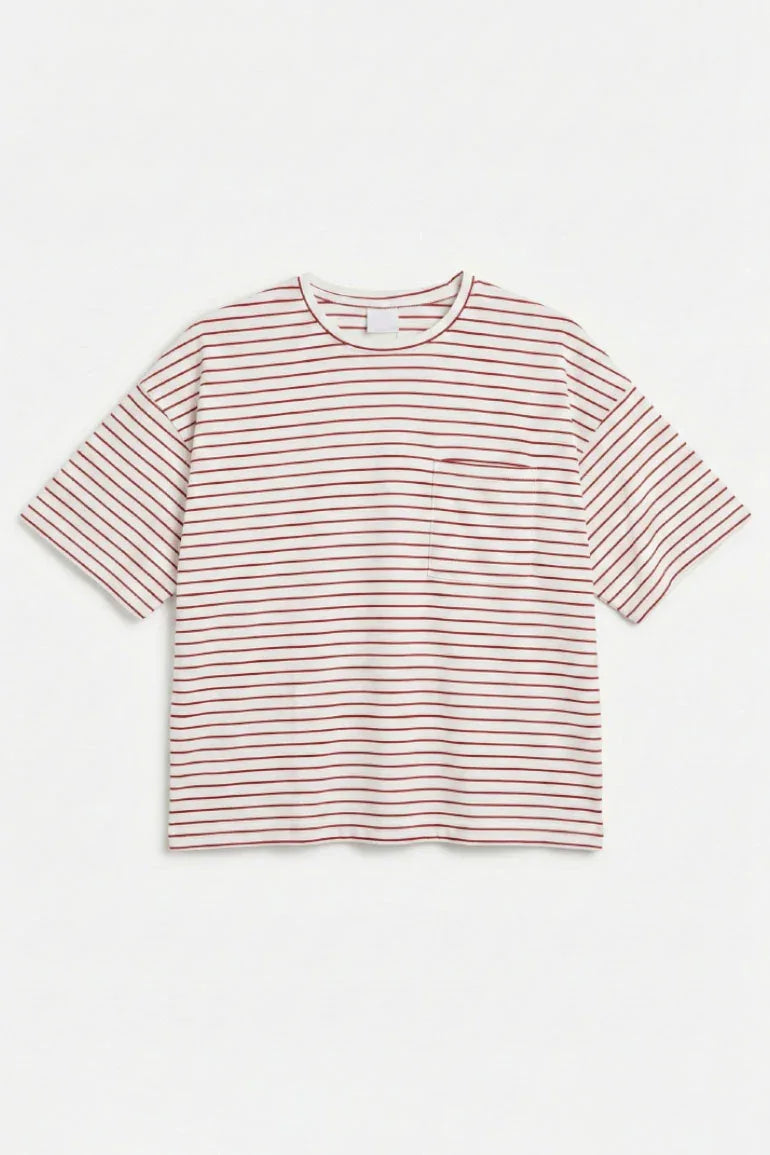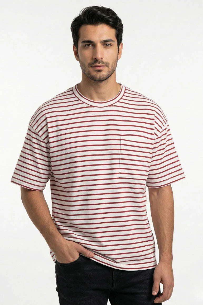 Classic brown striped T-shirt for men featuring fine horizontal stripes and a clean chest pocket. Designed with a relaxed fit and soft, breathable fabric for everyday comfort. Perfect for casual wear and effortless styling.