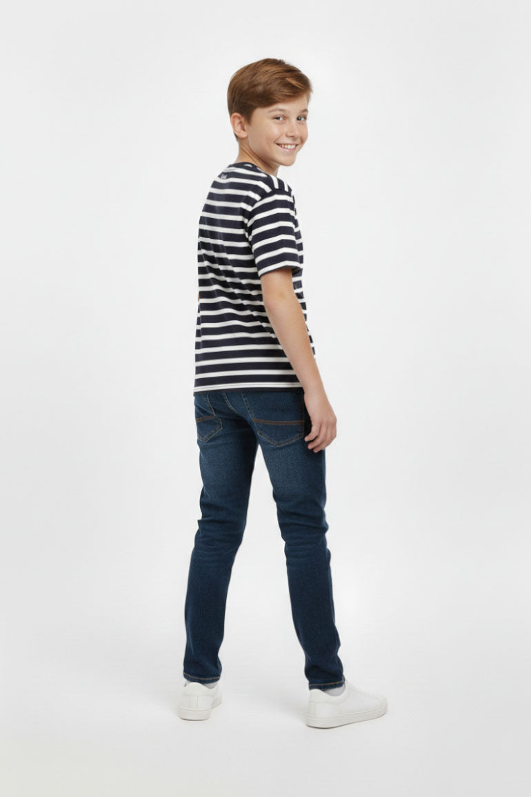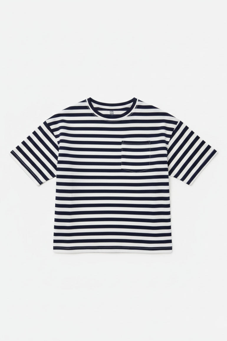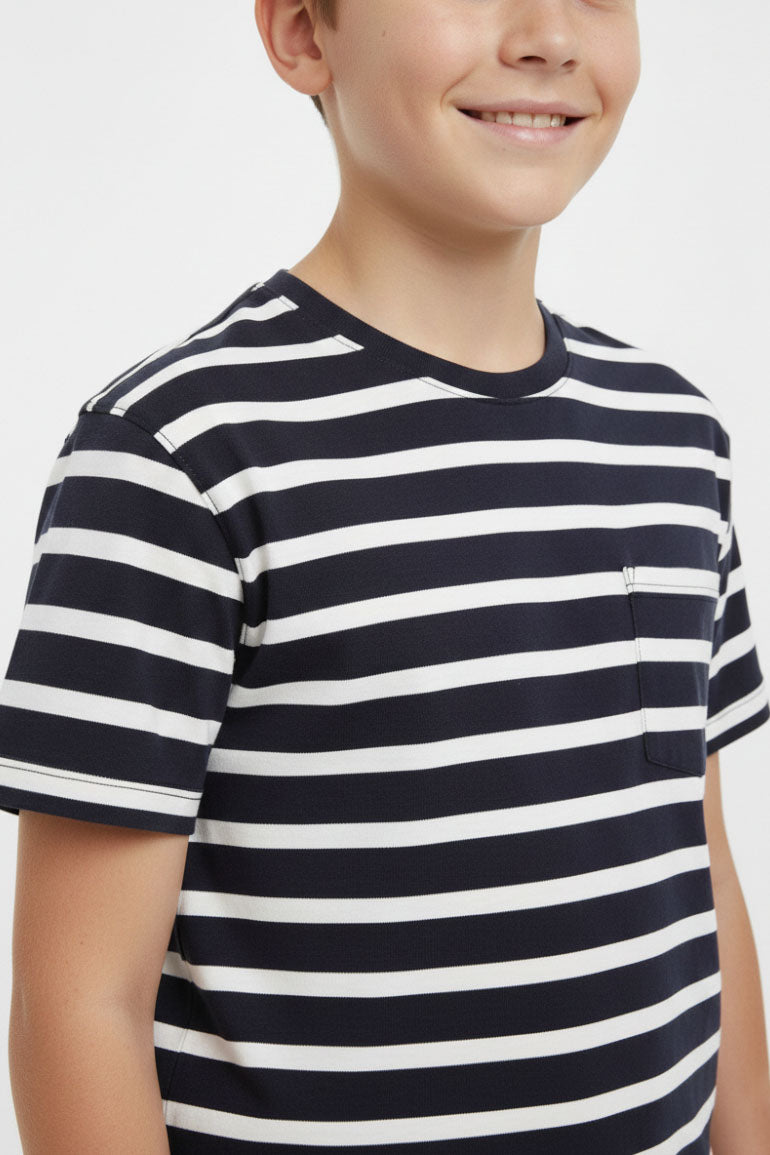 Classic white striped t-shirt featuring a round neckline and a functional chest pocket. Crafted from soft, breathable fabric for all-day comfort and effortless everyday style.