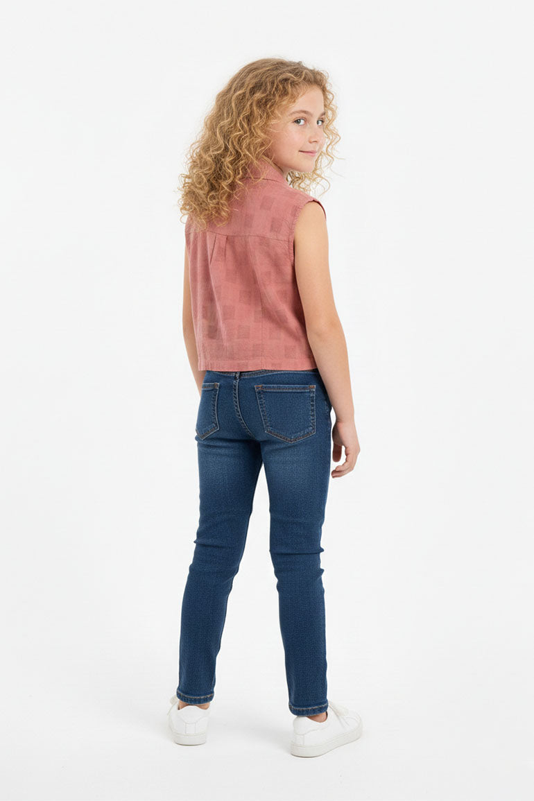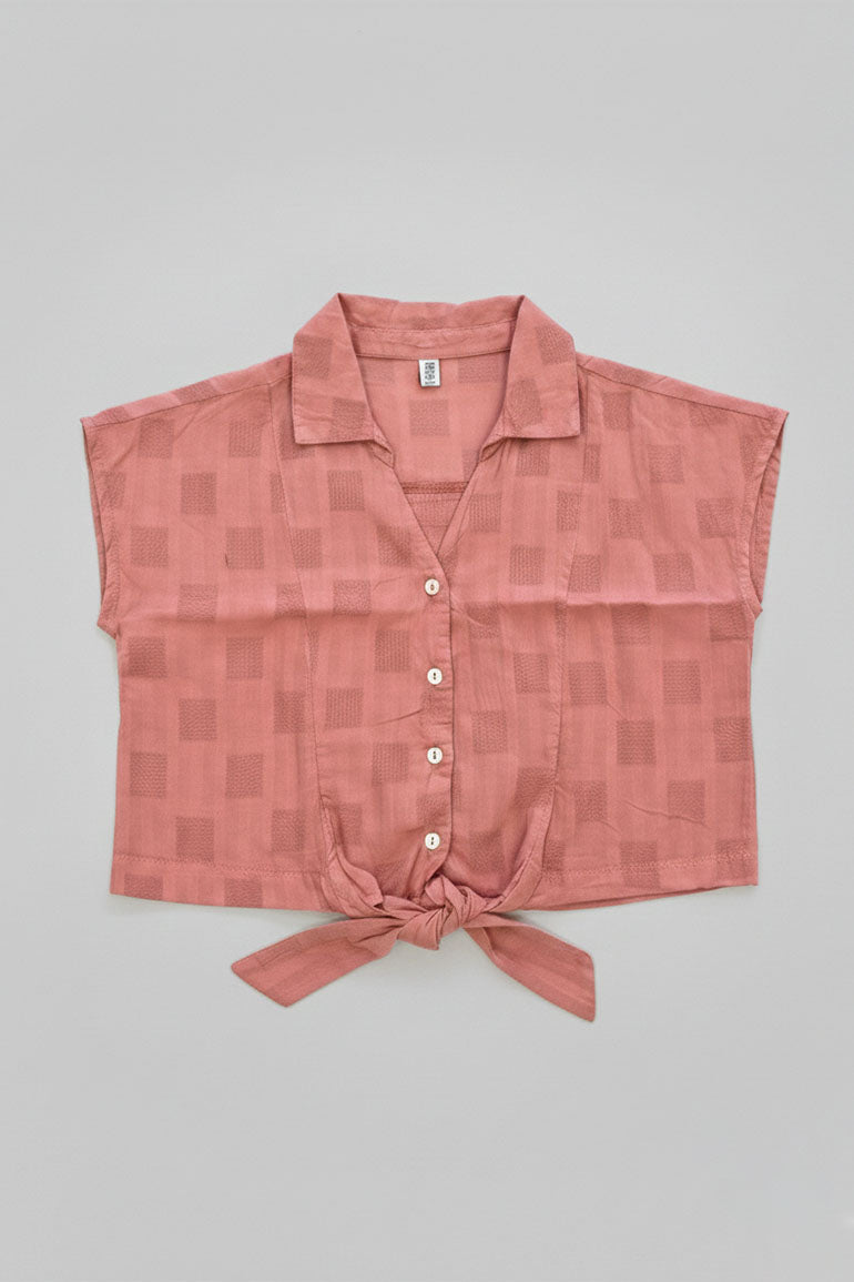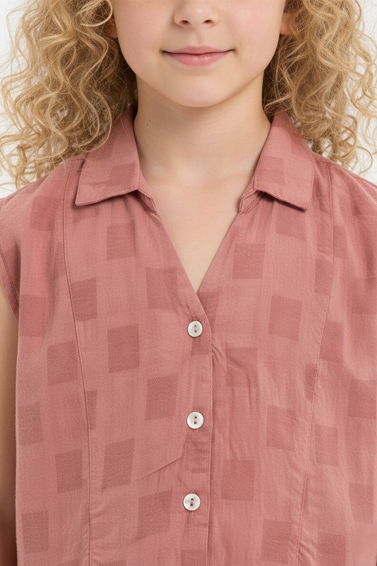 Lightweight sleeveless top with a smart collar and easy front buttons. Cute tie front hem for a playful fit that pairs well with jeans or skirts. Perfect for summer days casual outings and everyday wear.
