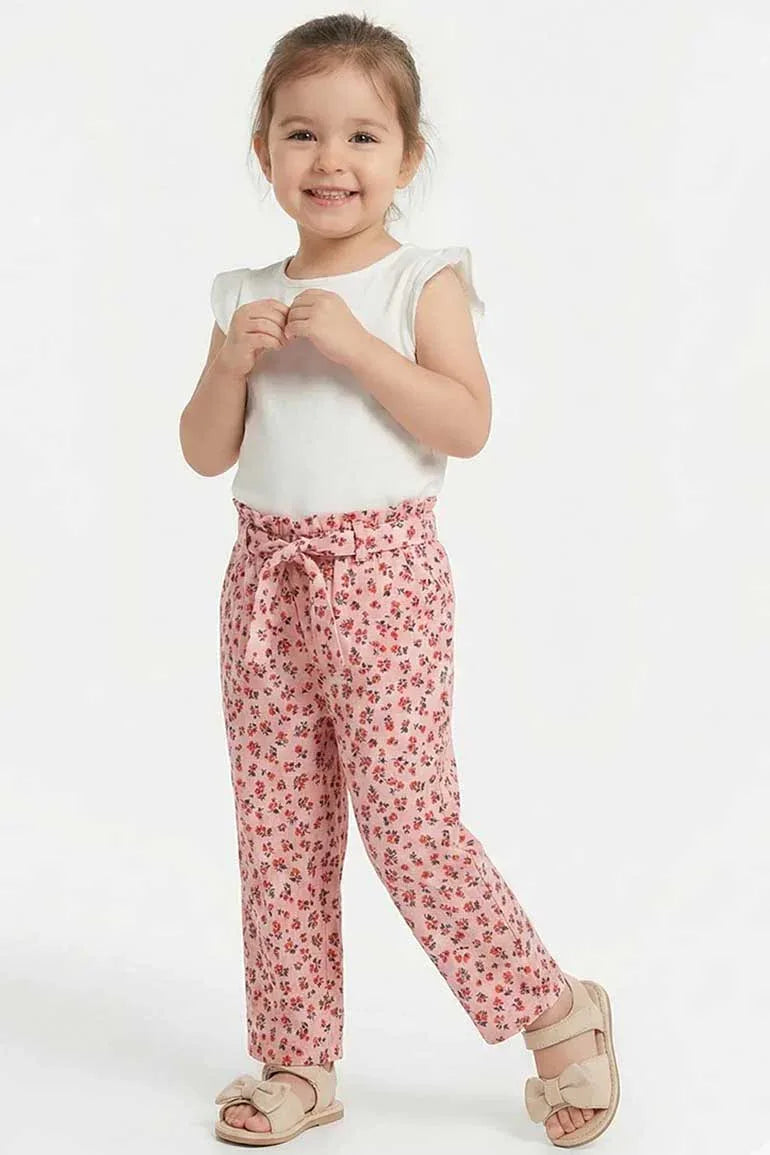Adorable soft trousers featuring a delicate floral print and a comfortable tie-waist design. Made from lightweight, breathable fabric to keep little ones comfy all day. Perfect for playtime, outings, and everyday wear.