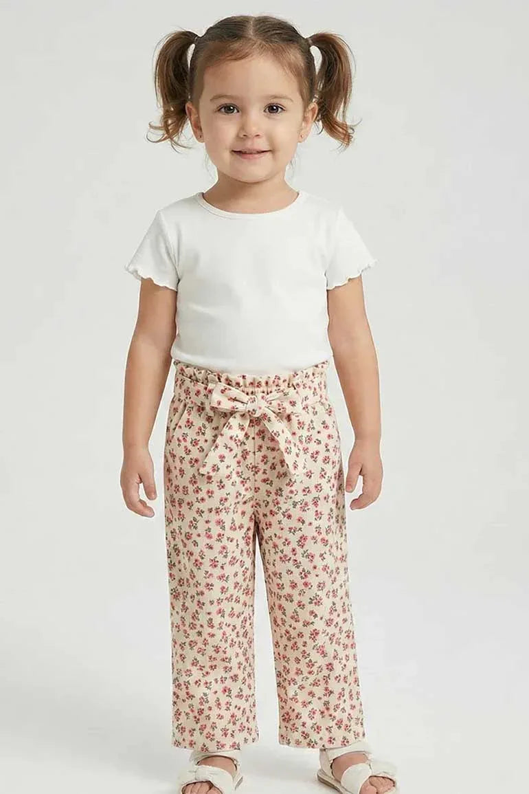 Adorable soft trousers featuring a delicate floral print and a comfortable tie-waist design. Made from lightweight, breathable fabric to keep little ones comfy all day. Perfect for playtime, outings, and everyday wear.
