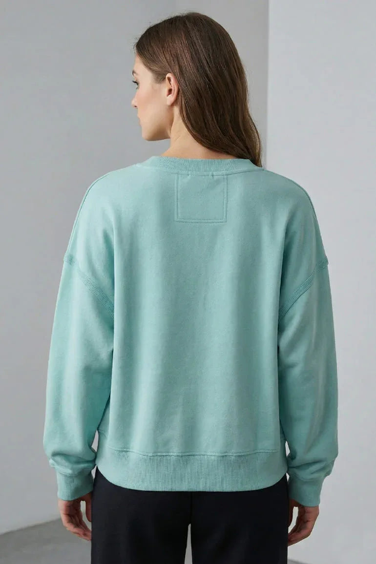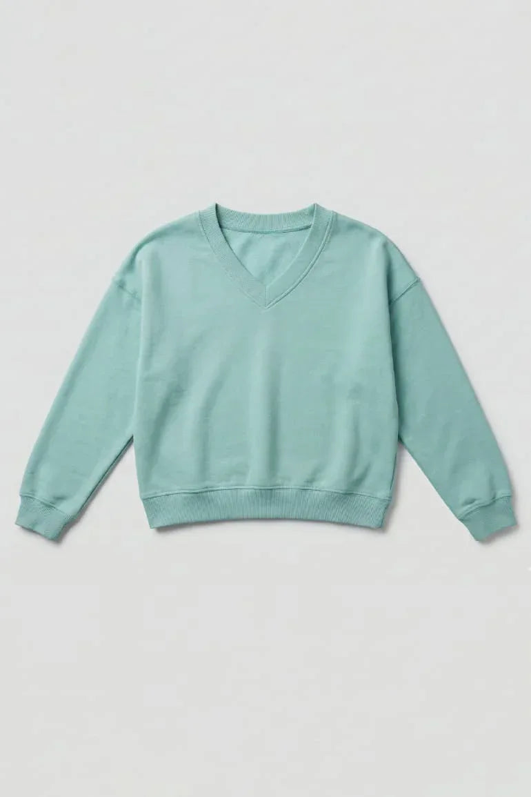 Stay effortlessly stylish in this mint green V-neck sweatshirt, designed with a relaxed fit and soft cotton blend for all-day comfort. Perfect for layering or a cozy standalone look — a refreshing essential for your casual wardrobe.
