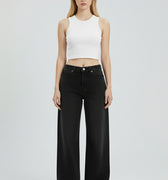 Elevate your casual style with these Wide-Leg Jeans For Women. Designed for a sleek yet relaxed silhouette, these jeans feature a soft washed-black finish that adds depth and versatility to any outfit. The high-rise fit flatters the waist, while the wide-leg cut offers comfort and a modern edge. Crafted from premium stretch denim, these jeans move with you for all-day ease and style.