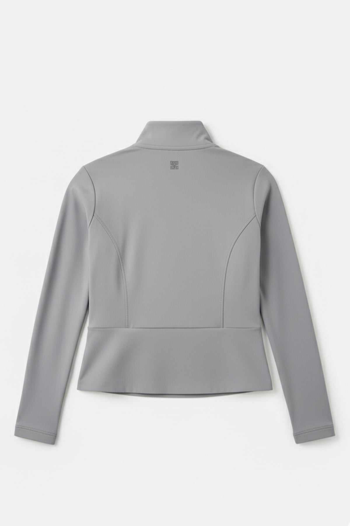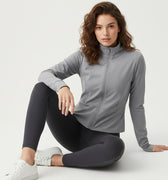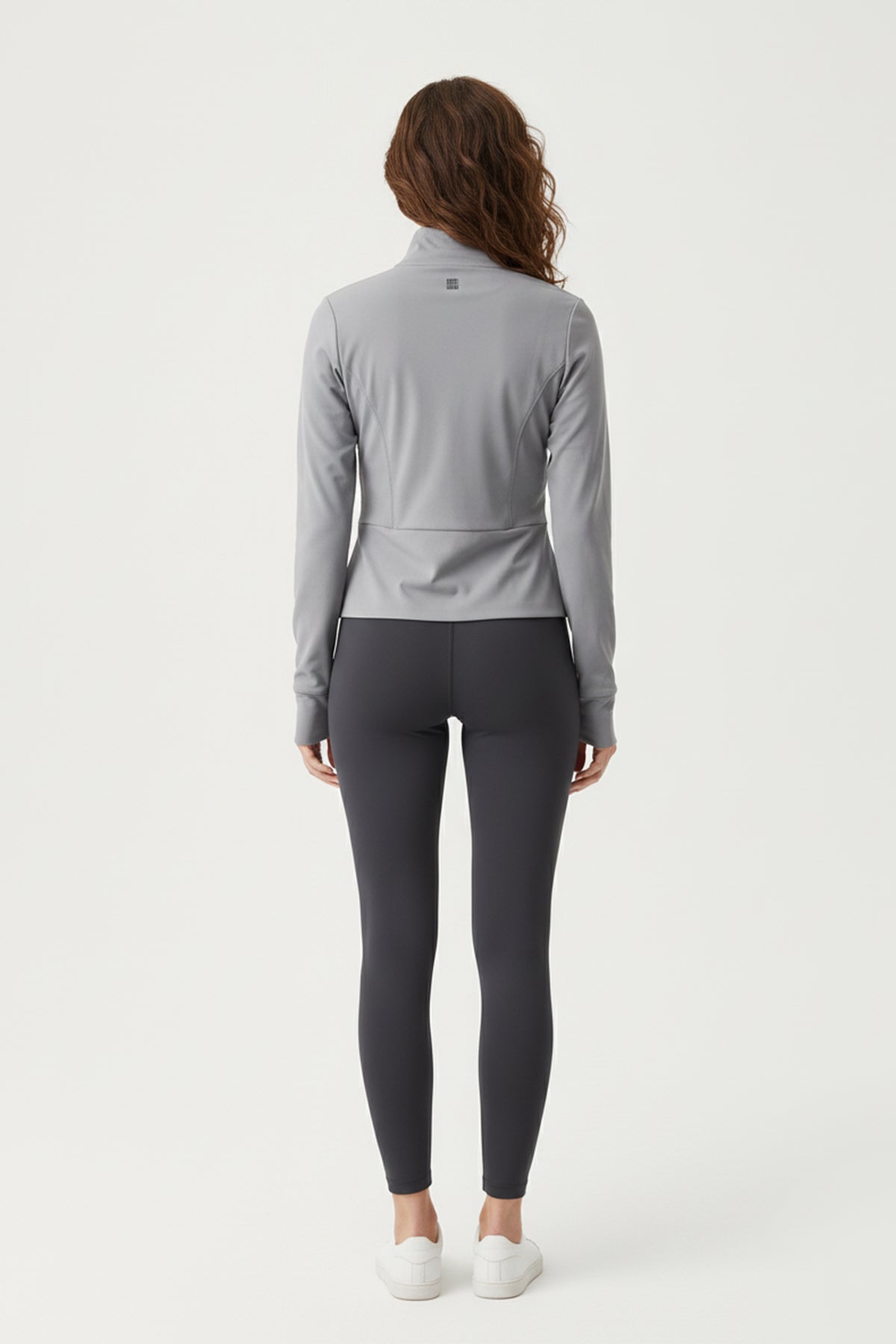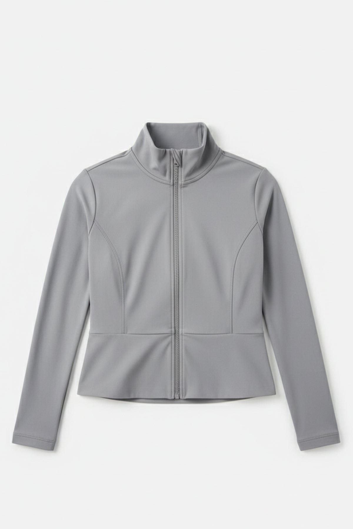 Stay sleek and comfortable with this zip-up activewear jacket, designed for a flattering fit and everyday movement. Made from smooth, stretch-knit fabric, it offers flexibility and a soft touch against the skin. The high neck and contoured seams create a streamlined look perfect for workouts, layering, or casual wear..