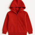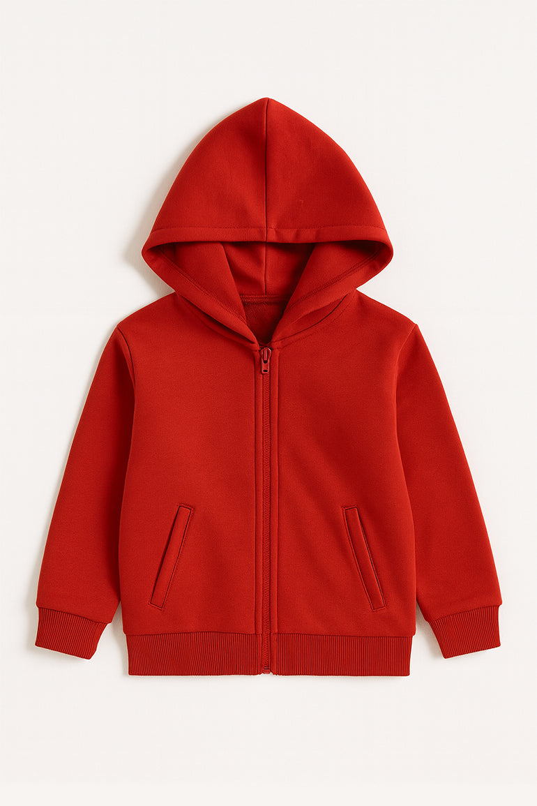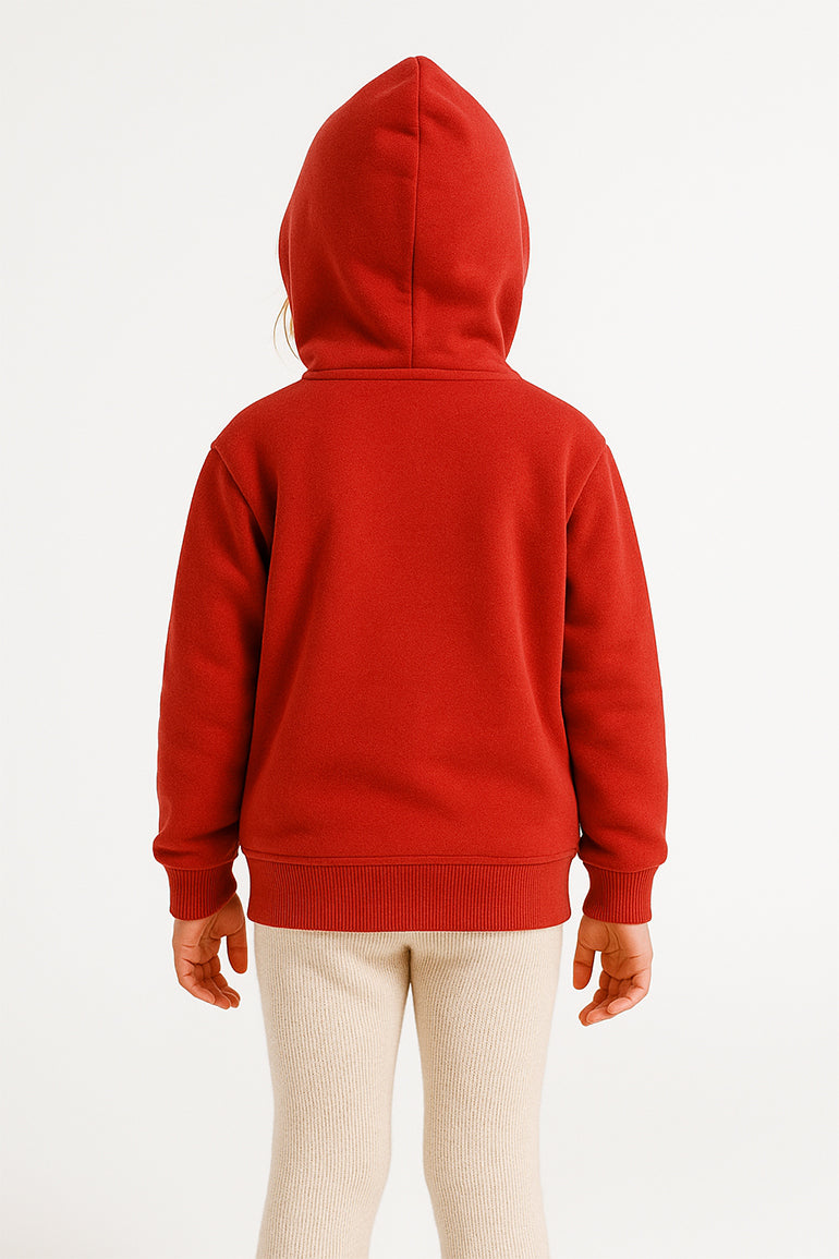 A versatile and cozy zip-up hoodie for girls featuring a soft inner lining, kangaroo pockets, and ribbed cuffs for a snug fit. Perfect for layering during cooler days or everyday casual wear.